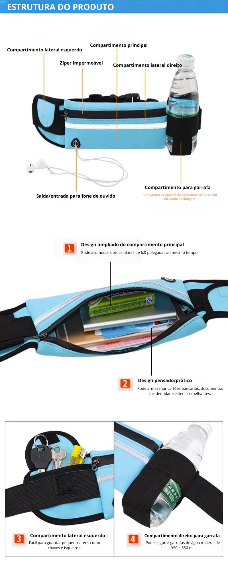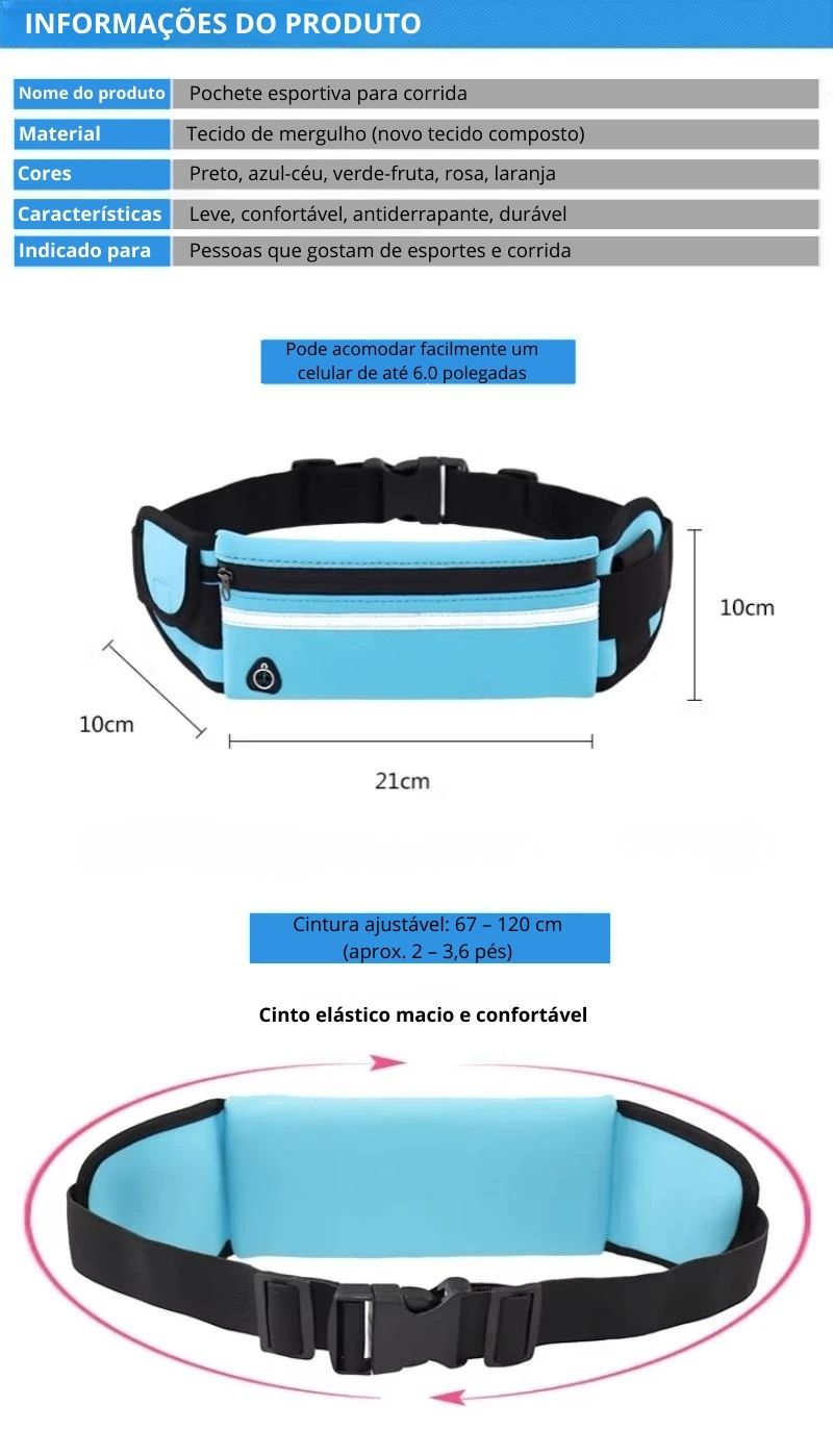 Ideal para corrida, caminhada, academia, viagens e uso diário, mantendo seus pertences sempre organizados e protegidos.