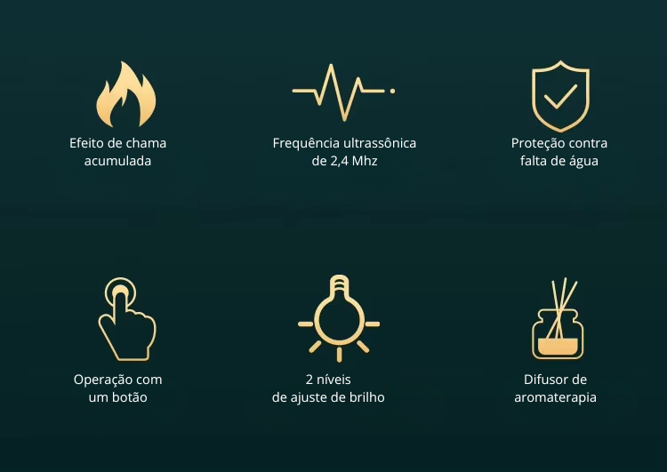Difusor não funciona?Por favor, utilize o adaptador correto (geralmente 5V2A ou adaptador de 12V, 24V) de acordo com as instruções. Certifique-se de que o nível da água esteja abaixo da linha de nível e evite que a água entre na ventilação.